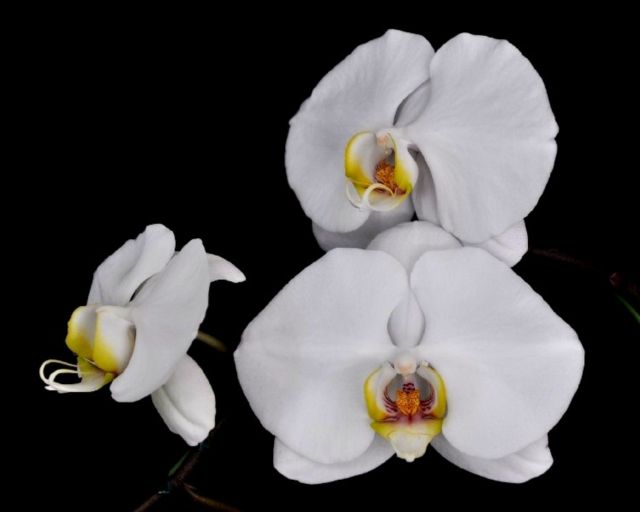 | ○応援花: 胡蝶蘭 職場の同僚が丹精込めて育てている胡蝶蘭が、今年も純白の花を付けました。ささやかですが、被災地の皆さんへの「応援花」となれば幸いです。 (花の白を際立たせるため、後方に黒い紙を配置して撮影:約50万画素) |